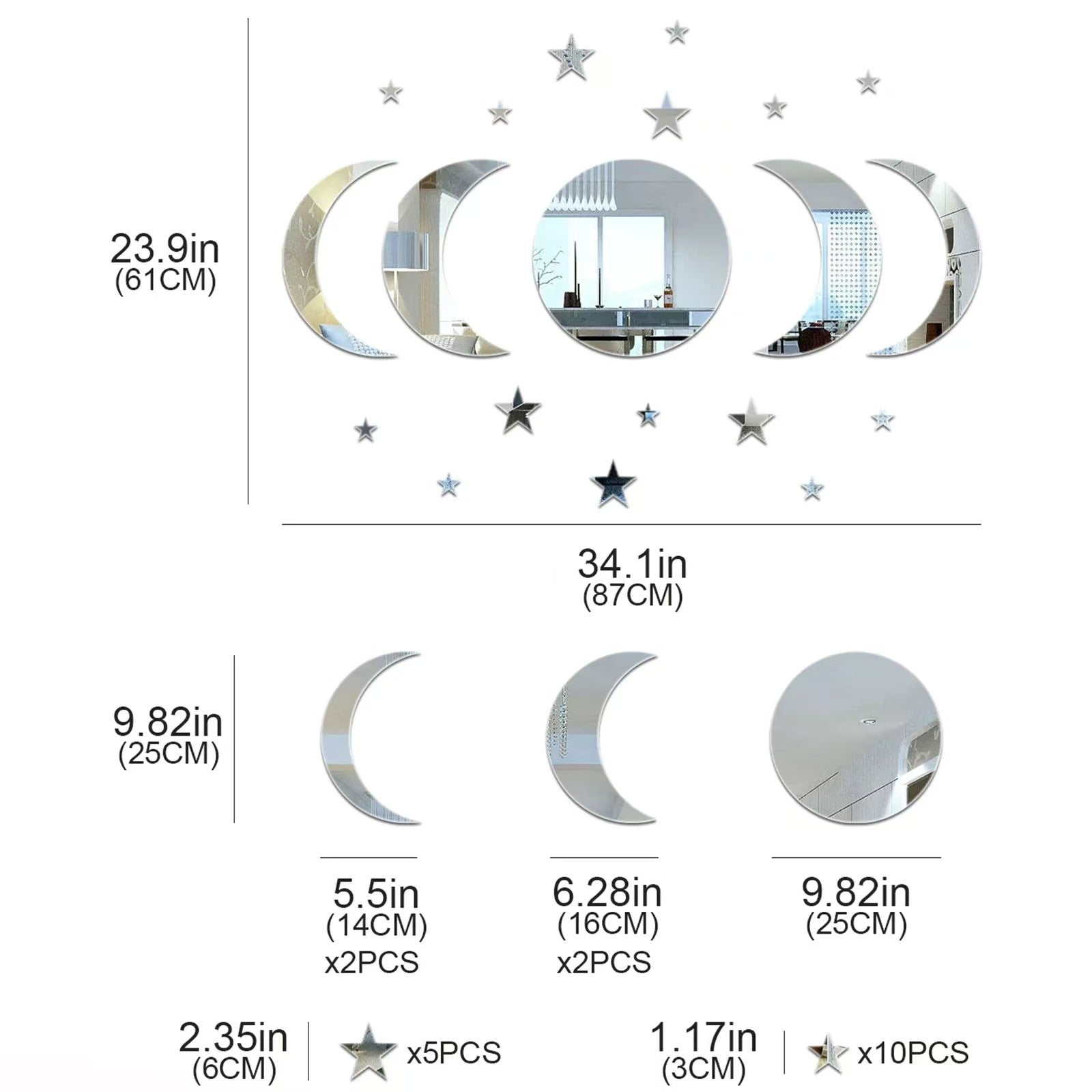 Acrylic Star Moon Shape Wall Sticker Lenses for Wall Decoration in Living Rooms, Bedrooms