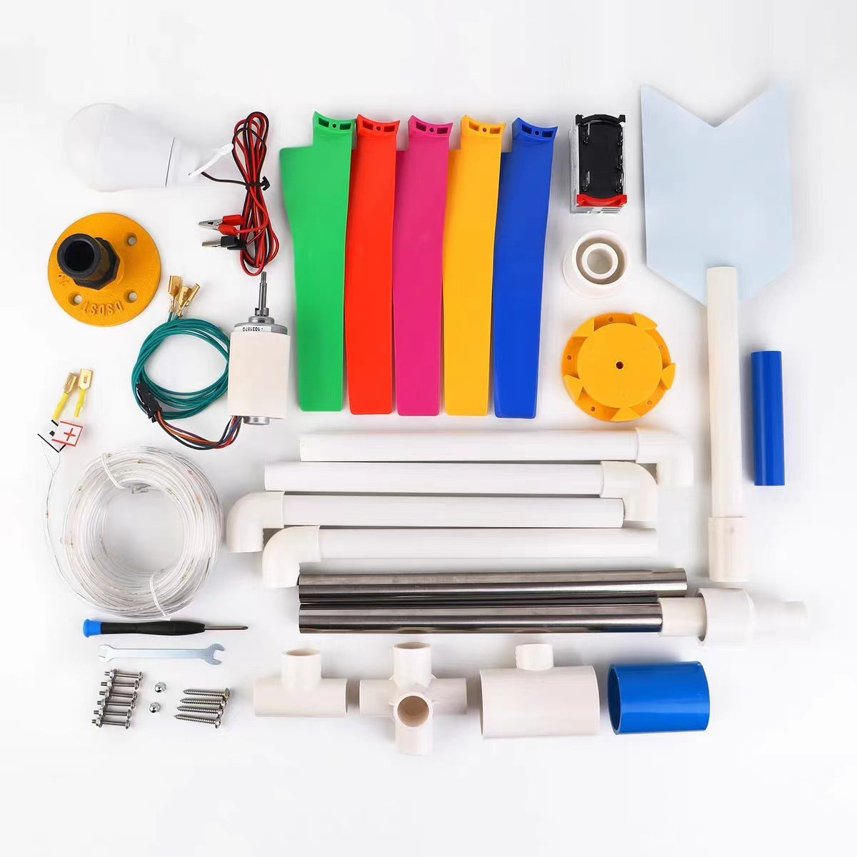 The Colorful blades are made of ageing resistant material ASA/PC. Its physical strength and color change little after 5 years of outdoor use.The support pole is made of 0.9mm thick stainless steel pipe, and the other supports are made of thickened material, making it resistant to strong winds.The tail is designed so that the blades can automatically adapt to the wind direction.