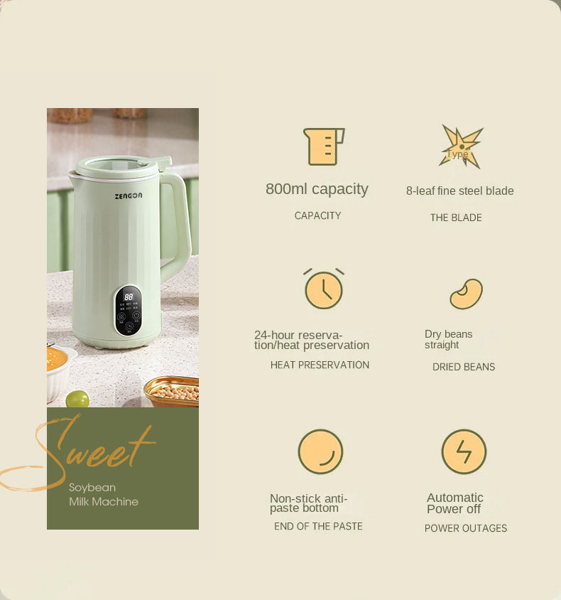 Functions of soybean milk machine: fruits and vegetables, wet beans, rice paste, cereals, corn juice