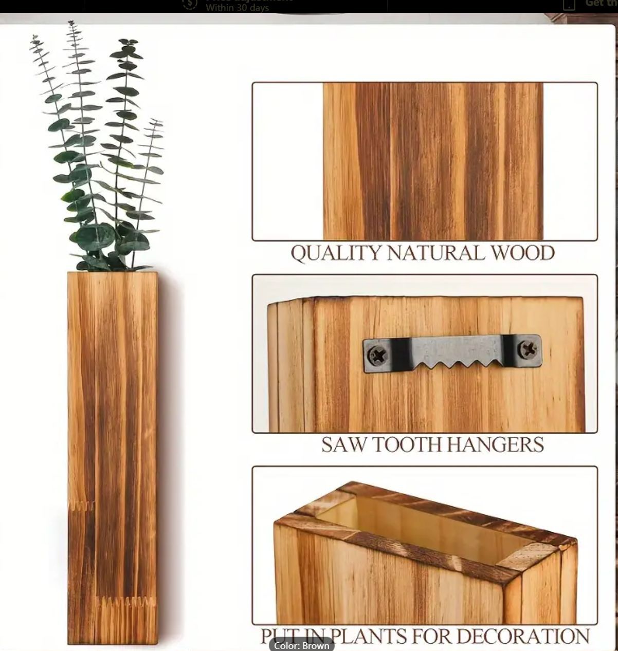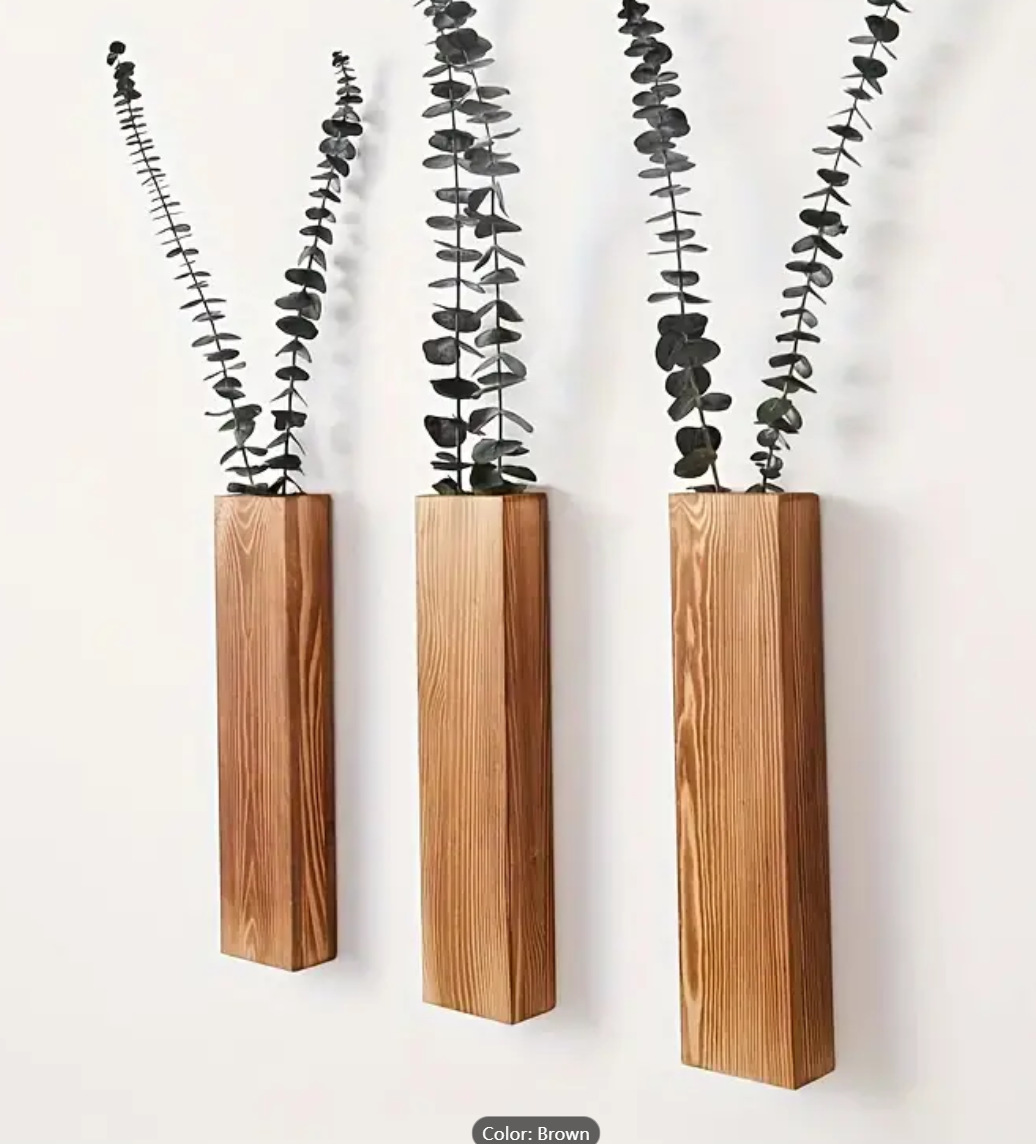Wooden wall vase dried flower decoration green plant container pine wood wall hanging vase